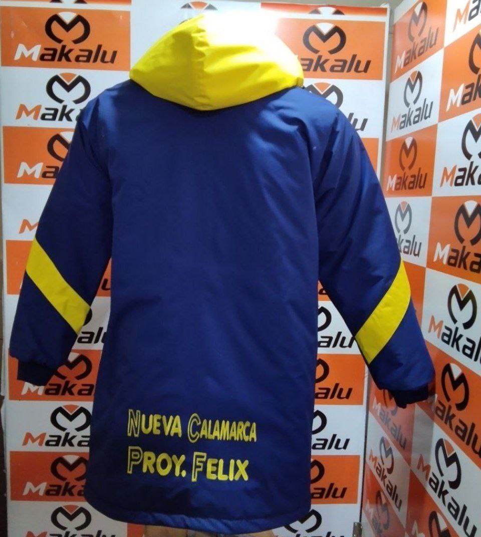 Incluye un logo bordado de pecho y un detalle engomado o letras bordadas en la espalada.